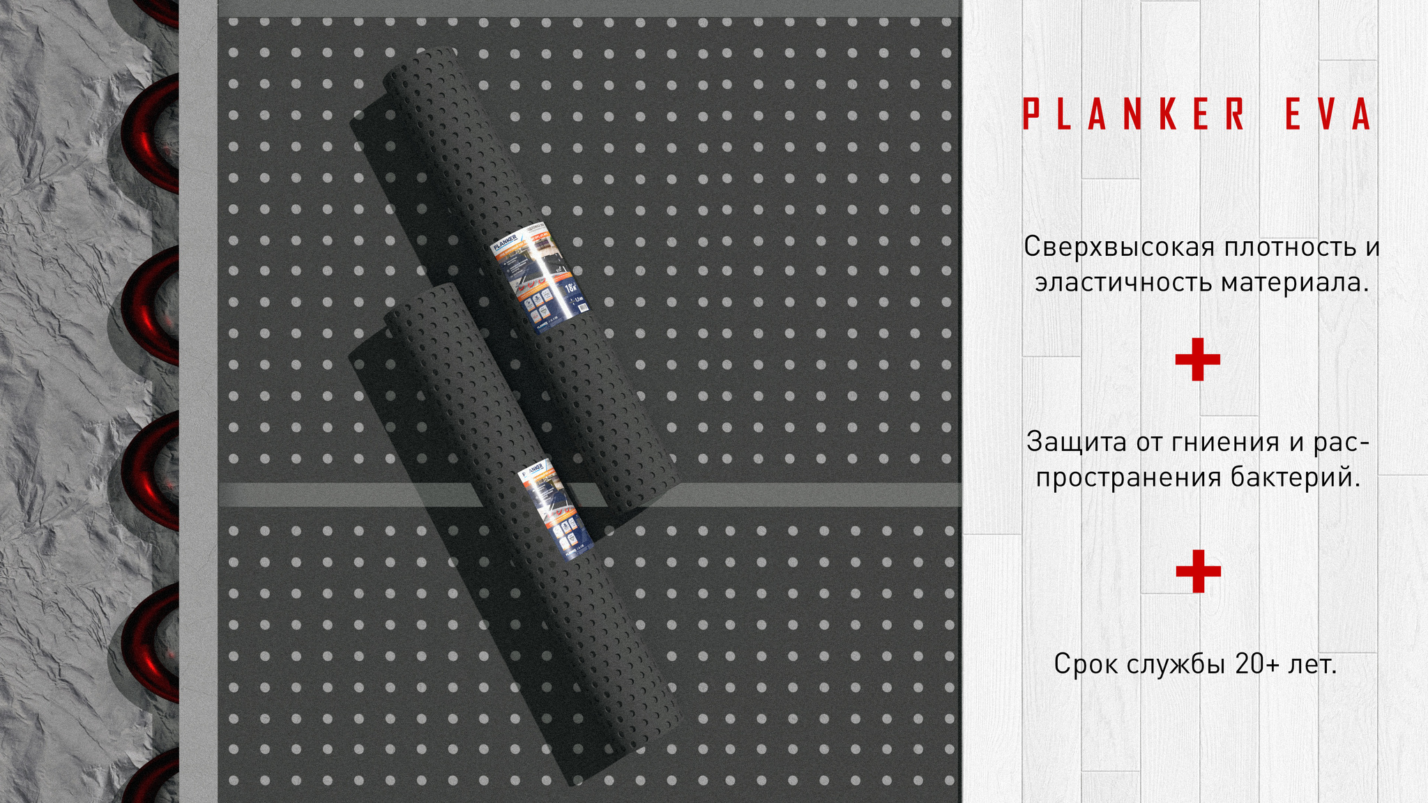 Подложка из этиленвинилацетата Planker ЭВА для отапливаемых полов, рулонная , перфорированная (18,6 м2) 1,5 мм